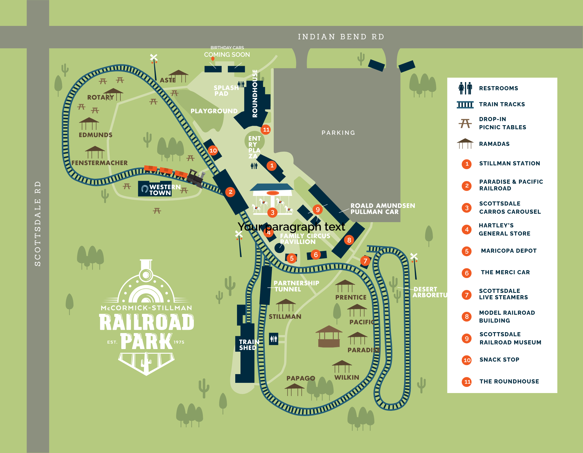 The McCormick-Stillman Railroad Park has a number of unique spaces for your next event or party. The park features nine outdoor picnic ramadas that can accommodate between 50 and 250 people. All ramadas have tables, grills, limited electricity, and trash bins.