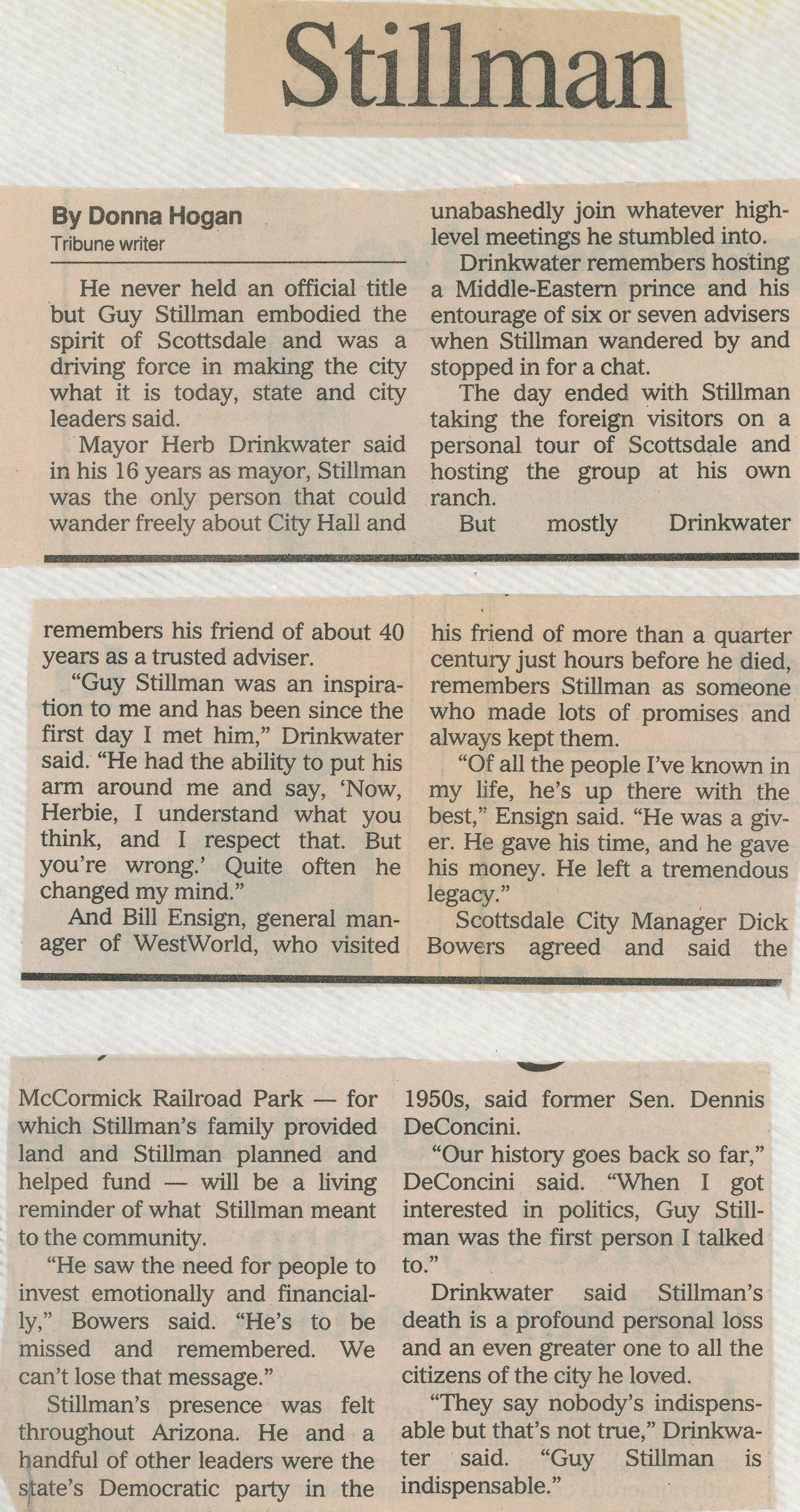 Newspaper Articles on Guy Stillman’s Rememberance/Death