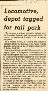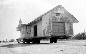 The Santa Fe Railroad built a depot in Wendon, Arizona for the Arizona and California Railway. The depot was moved to Congress, Arizona in 1936, and finally to Aguila, Arizona (approximately in 1964). The depot also housed Aguila’s telegraph office. The Atchison, Topeka, and Santa Fe Railway company had closed the Aguila Depot effective August 4, 1969; in 1977 it was purchased by the Scottsdale Railroad and Mechanical Society and moved by truck to the railroad park.
