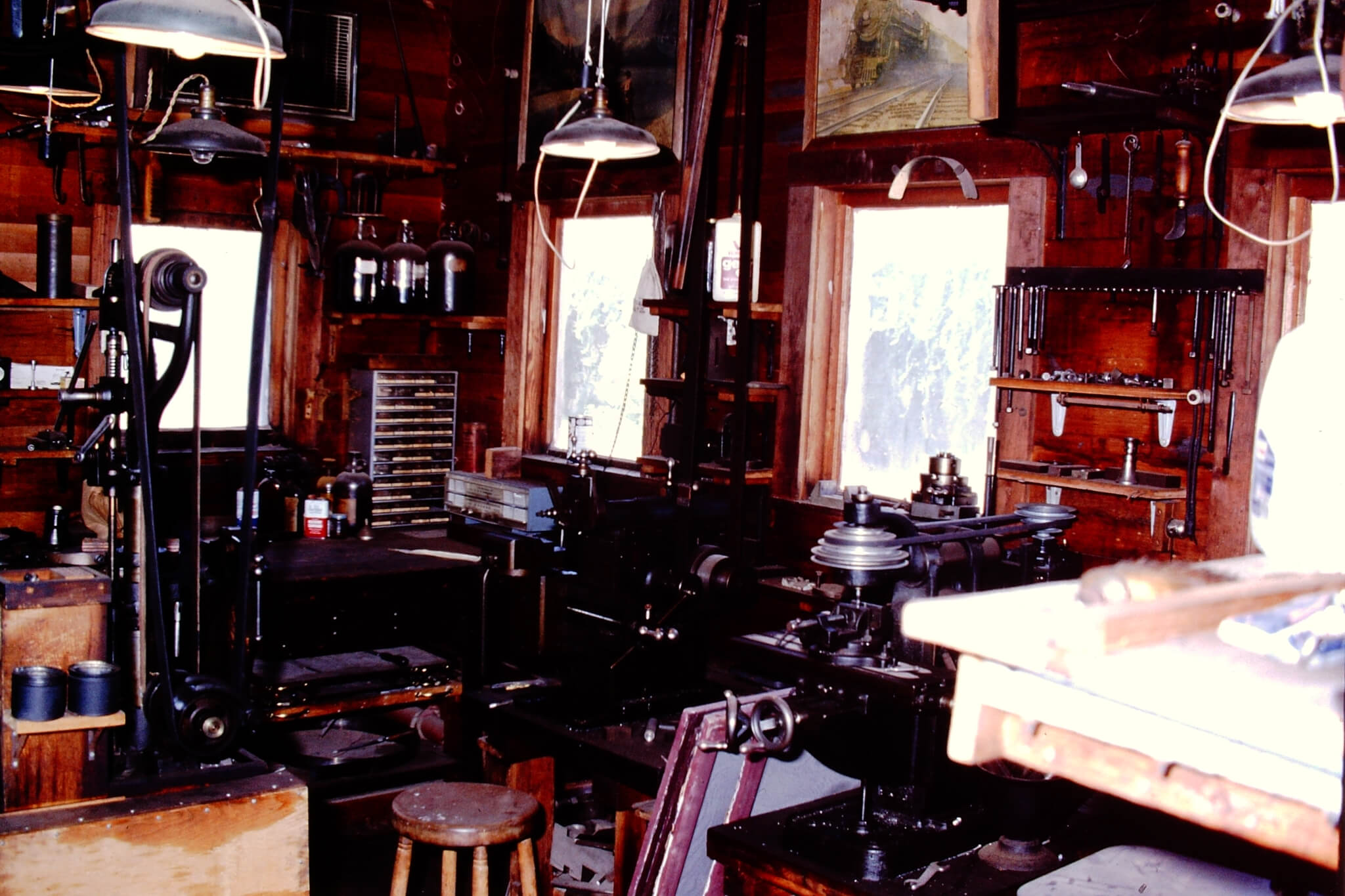 The machinery within the shop was mostly made in the 1800s and every lathe, drill press, and milling machine was run by a series of belts from overhead shafts. Many things were built within the shop, including scale model live steam locomotives and during World War II, Brooks was contracted by the AiResearch to build precision tools and parts for B-29 bombers.