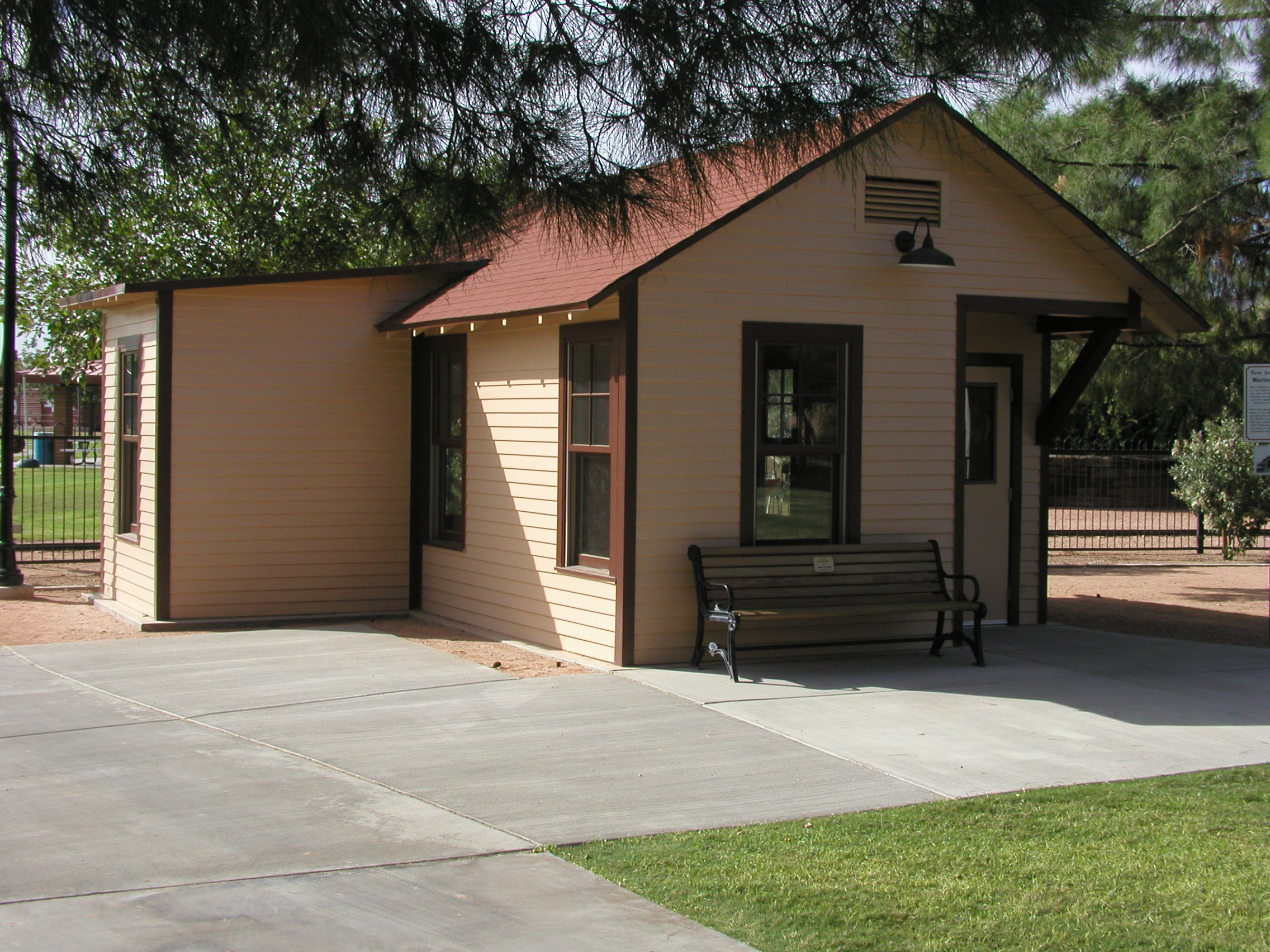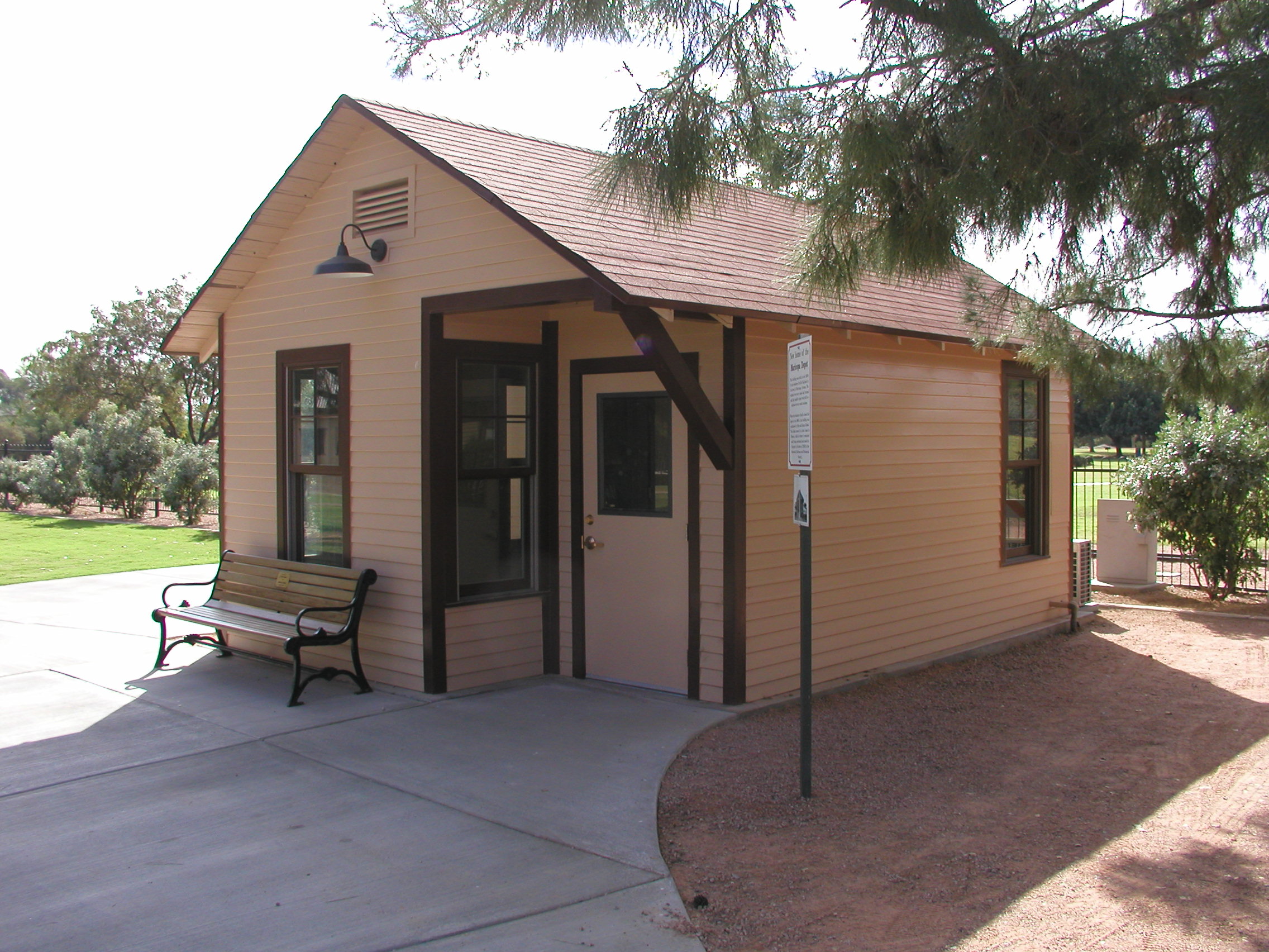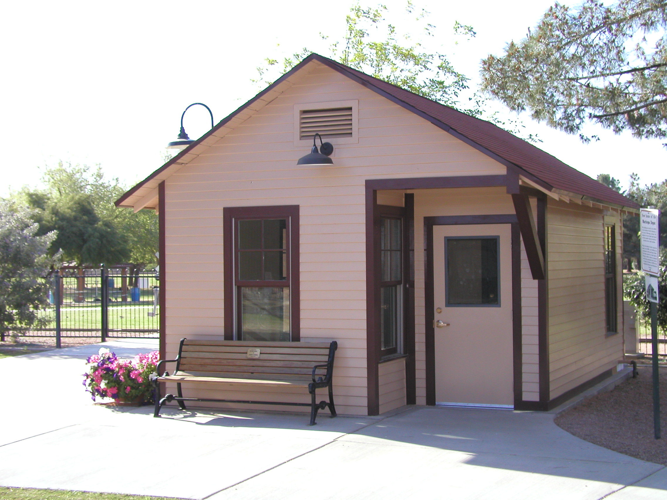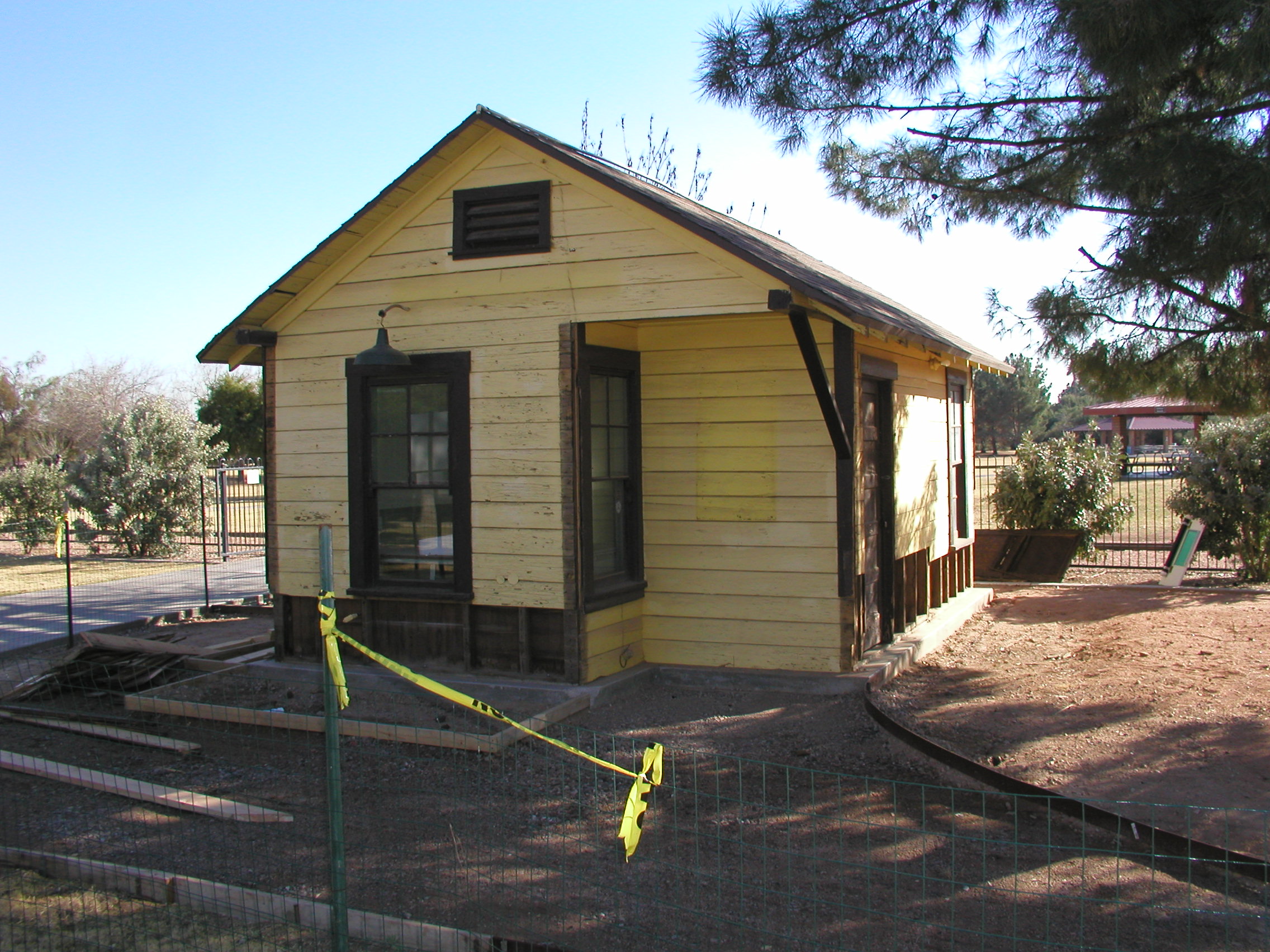 The 1930s-vintage Maricopa, Arizona Depot was moved to the park in October by the Scottsdale Railroad and Mechanical Society. According to the plaque adjacent to the building, “This building was built in the 1930s by the Southern Pacific Railroad in the town of Maricopa, Arizona. The original two-story depot had burned and this smaller depot was built so railroad service could continue.