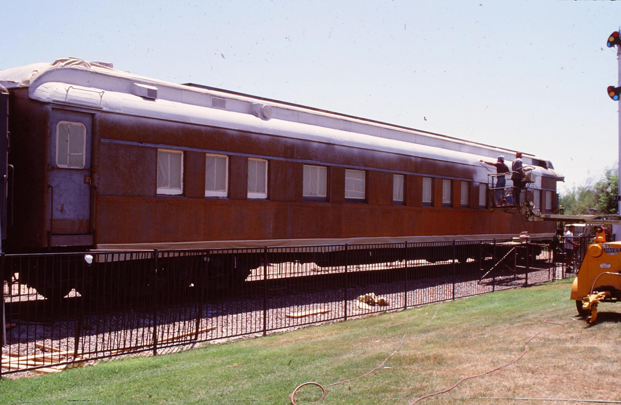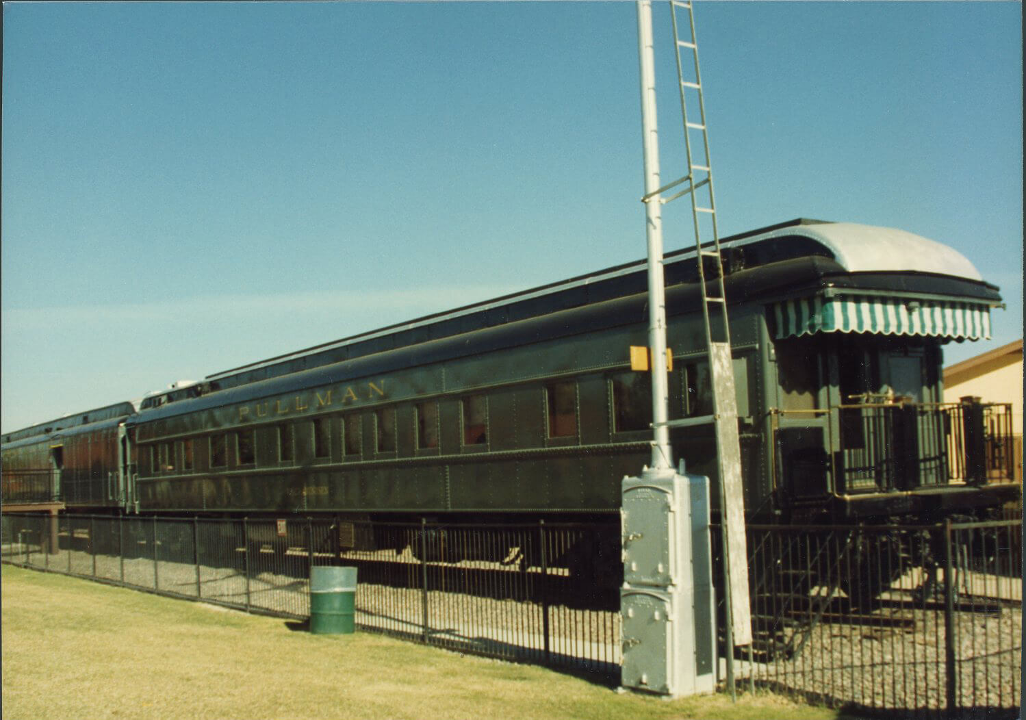 The City of Scottsdale accepted the gift of the Roald Amundsen Pullman Car, donated by Talley Industries’ Franz and Mae Sue Talley. Built by the Pullman Company in 1928 at a cost of $205,000, the luxurious and very secure car was used by several U.S. presidents (Hoover, FDR, Truman and Eisenhower) and visiting heads of state. The historic car was moved to the park on June 14, 1973 from a railroad siding in Mesa (20-mile trip), orchestrated by City Parks Superintendent Bill Ensign. Restoration was completed in 1990, when dedication took place on Aug. 17 to commemorate the 50th anniversary of the Ogdensburg Declaration, which was signed on board by President Roosevelt and Canadian Prime Minister King.